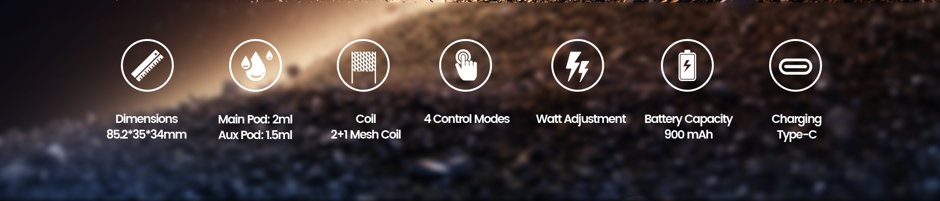 Dual mesh coils in the main pod provide bold and consistent base flavors, while the auxiliary pod's single mesh coil intensifies specific notes, delivering a well-rounded, dynamic taste.